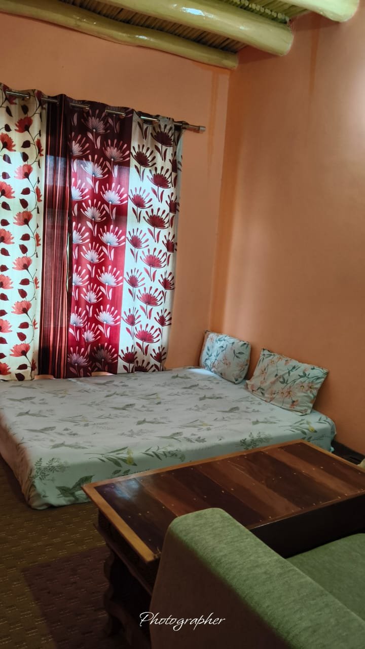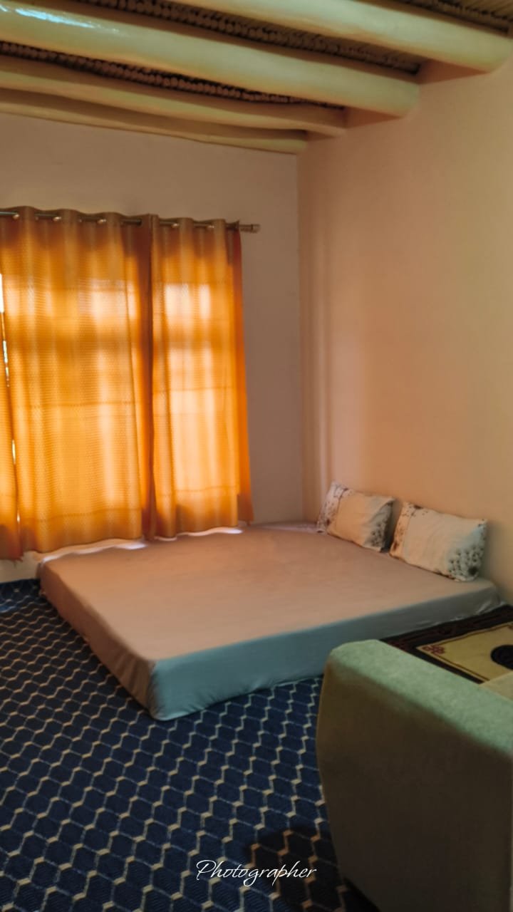 Each of our two guest rooms is designed in a simple, cozy Ladakhi style, offering comfort and warmth in the peaceful setting of Wanla village. The rooms feature comfortable double beds with clean linens, extra woollen blankets for chilly nights, and traditional wooden furnishings including a table and chair. Guests will enjoy natural lighting through traditional windows and stunning views of the surrounding mountains. The rooms are perfect for solo travelers, couples, or small groups looking for a calm and authentic village experience. Access to a clean, shared bathroom with 24×7 running water and hot water on request is available