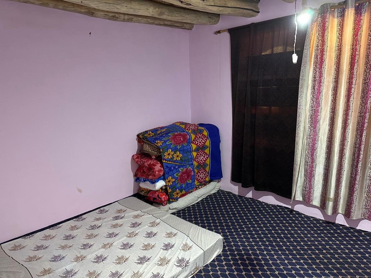 Guests have access to charging points, a wardrobe/clothes rack, table and chair, dustbin, and a mirror, ensuring convenience for all. A room heater or Bukhari (on request) keeps the room warm during chilly nights.