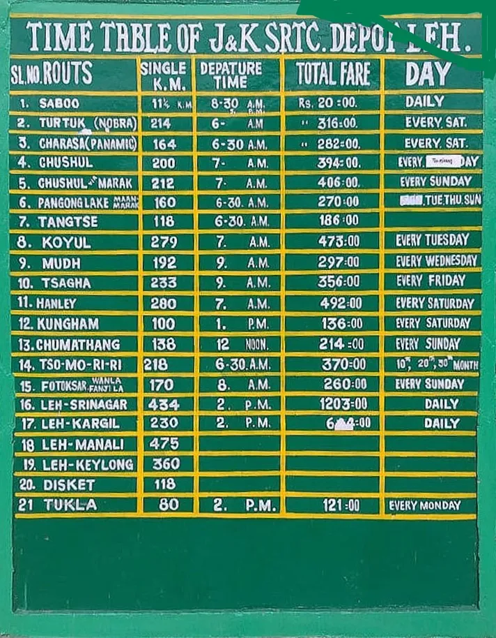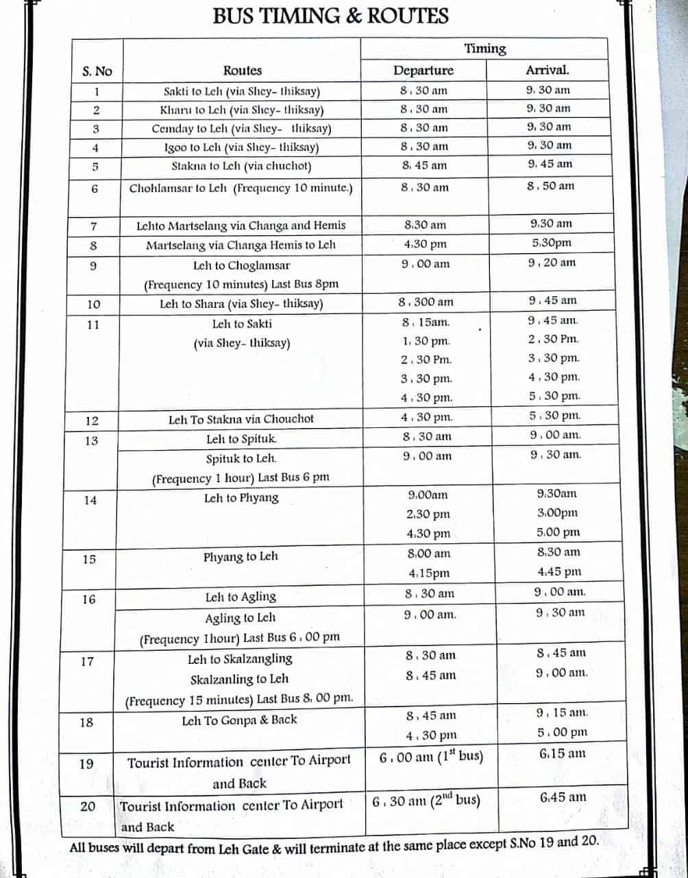 Leh Bus Routes & Fares (Updated July 2025)